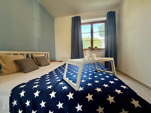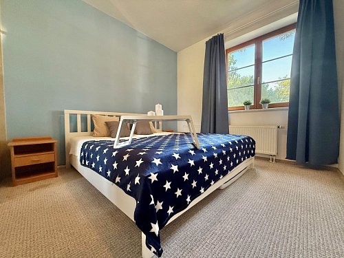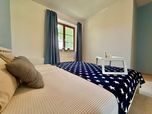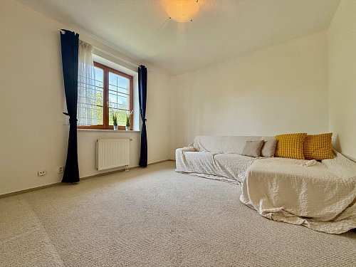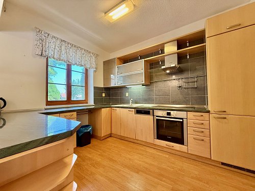 Dispozičně je nemovitost řešena jako 4+kk, s velmi dobrým uspořádáním. Součástí je světlý obývací pokoj spojený s kuchyňským koutem, který tvoří srdce domu. V zimních měsících si zde můžete užít atmosféru posezení u krbu, v létě pak oceníte pohodlný přímý vstup na terasu.