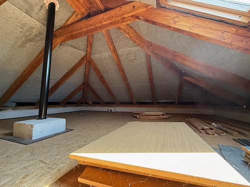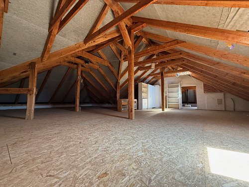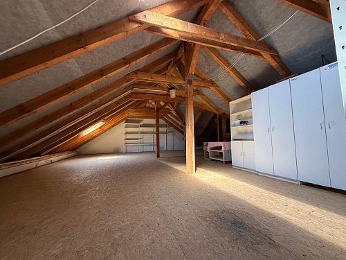 Dům kromě přízemního podlaží nabízí také půdní prostory vhodné k vybudování dalších obytných místností (82 m2). Pod domem se nachází sklep se dvěma místnostmi a vlastním výtahem. Celý dům je bezbariérový. K dispozici je prostorná terasa a upravená zahrada, která každý den nabízí jedinečný výhled na okolní scenérii. Zahrada je nejen okrasná, ale i užitková – ideální pro zdravý životní styl. Najdete zde ovocné stromy, vyvýšené záhony, závlahový systém a samostatné technické zázemí (dvě dřevěná stavení). Díky tomu zahradní nářadí a dílna nezabírají obytnou plochu domu.